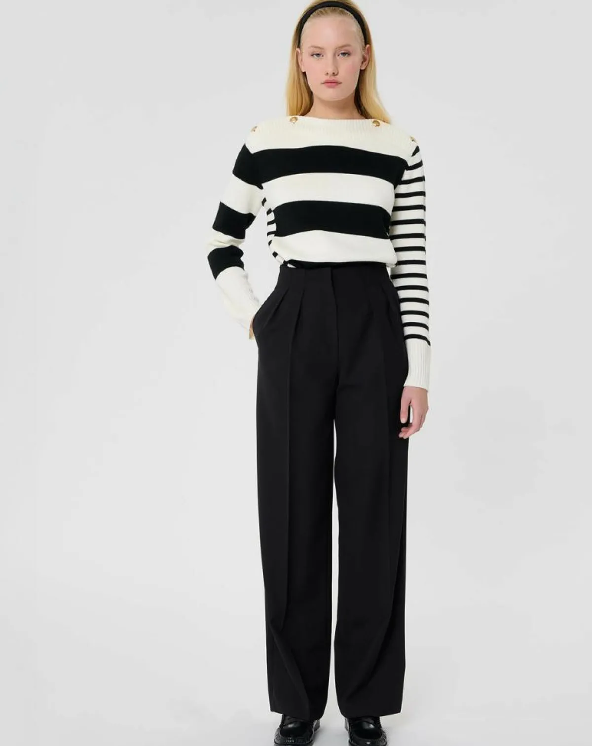 Sa coupe palazzo est ajustée à la taille