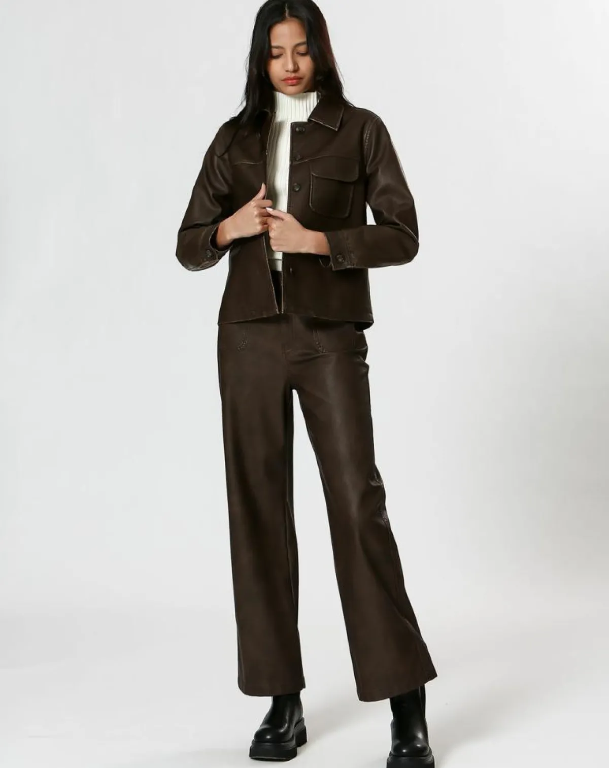 Blue Wellford Vestes, Blousons|Veste en Cuir Alazeia gris foncé