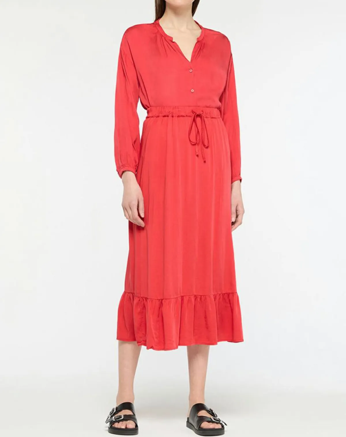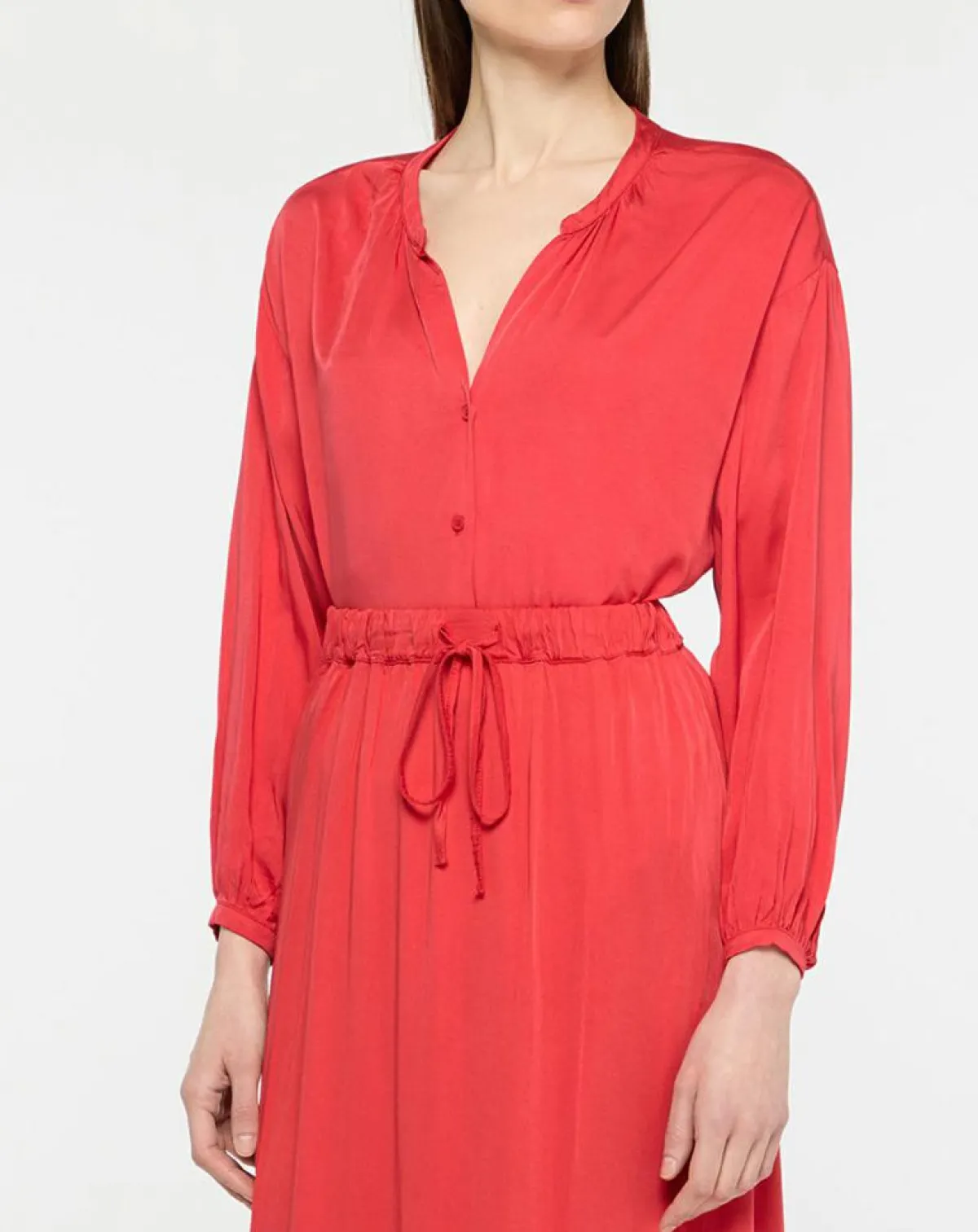 Cette chemise fluide Yerse est munie d’un col tunisien, d’une fermeture boutonnée et d’une base asymétrique.
