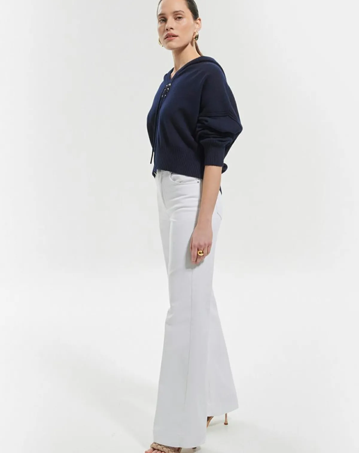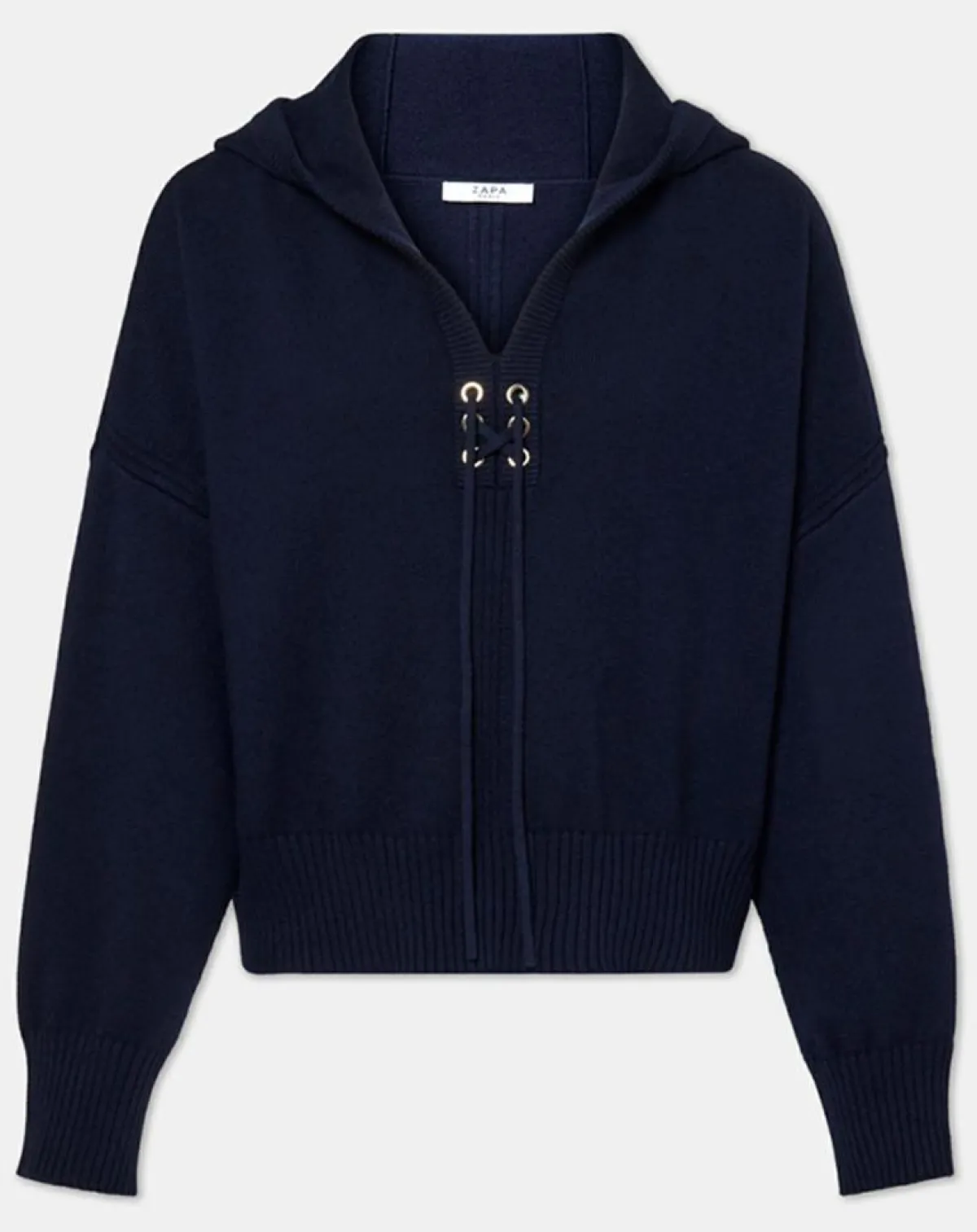 Les lacets ajustables sur le devant ajoutent une touche d’orginalité à ce pull, réglables selon votre préférence.