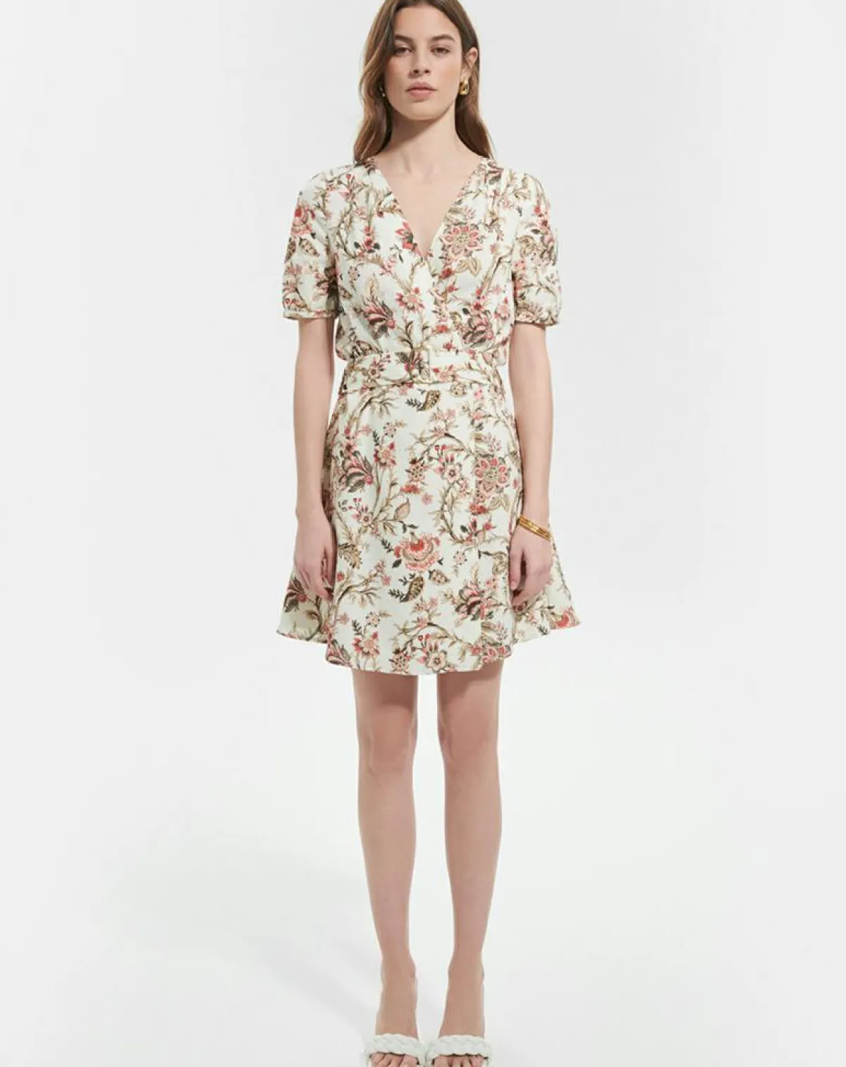 La robe RUSSELINA, arborant un délicat imprimé floral rétro, séduit par son côté féminin