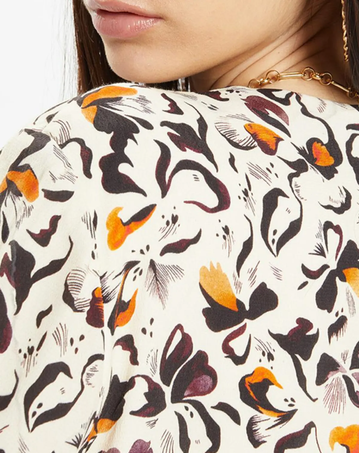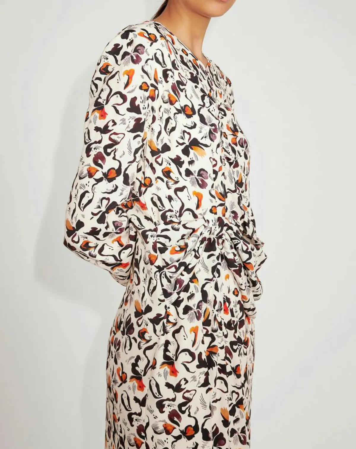 Pièce forte aux tons ocres, bruns et blancs, la robe fendue Richie est parfaite pour se calquer sur l’automne-hiver