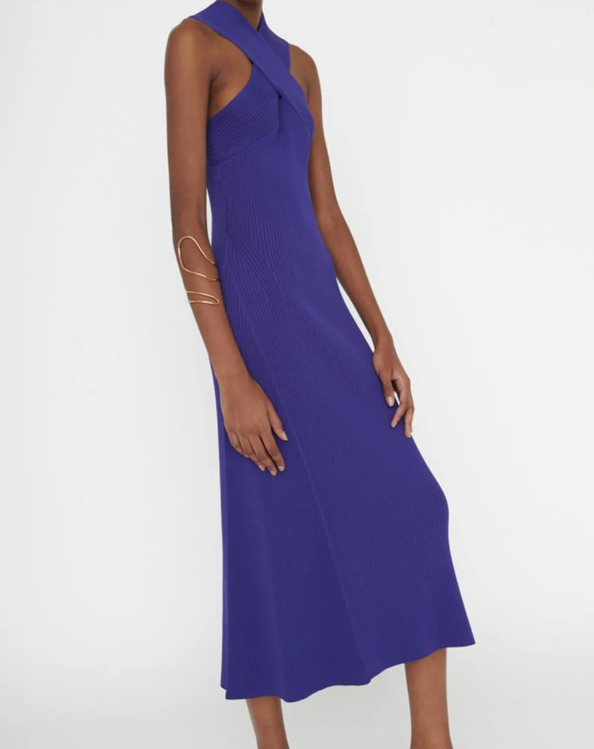 La robe ROSABELLA sans manches est structurée autour d’un décolleté et d’un dos à bretelles croisées