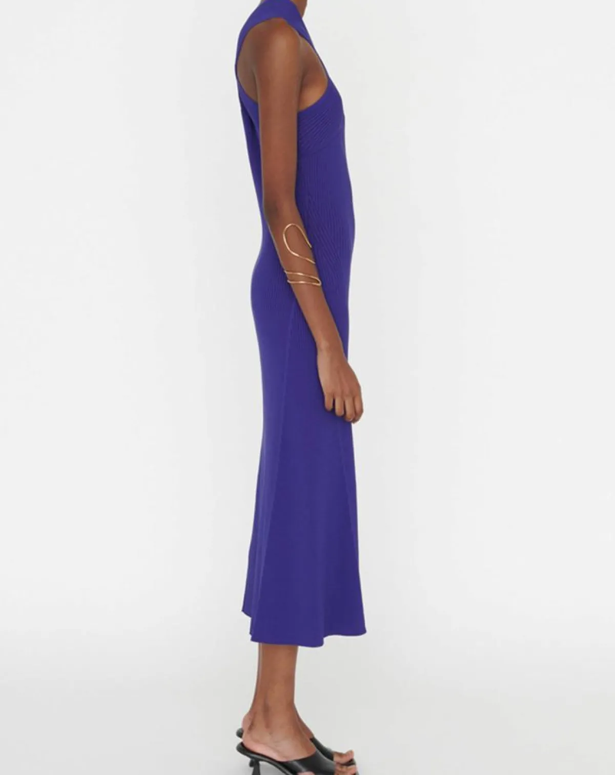 Cette robe confectionnée en maille souligne une silhouette féminine
