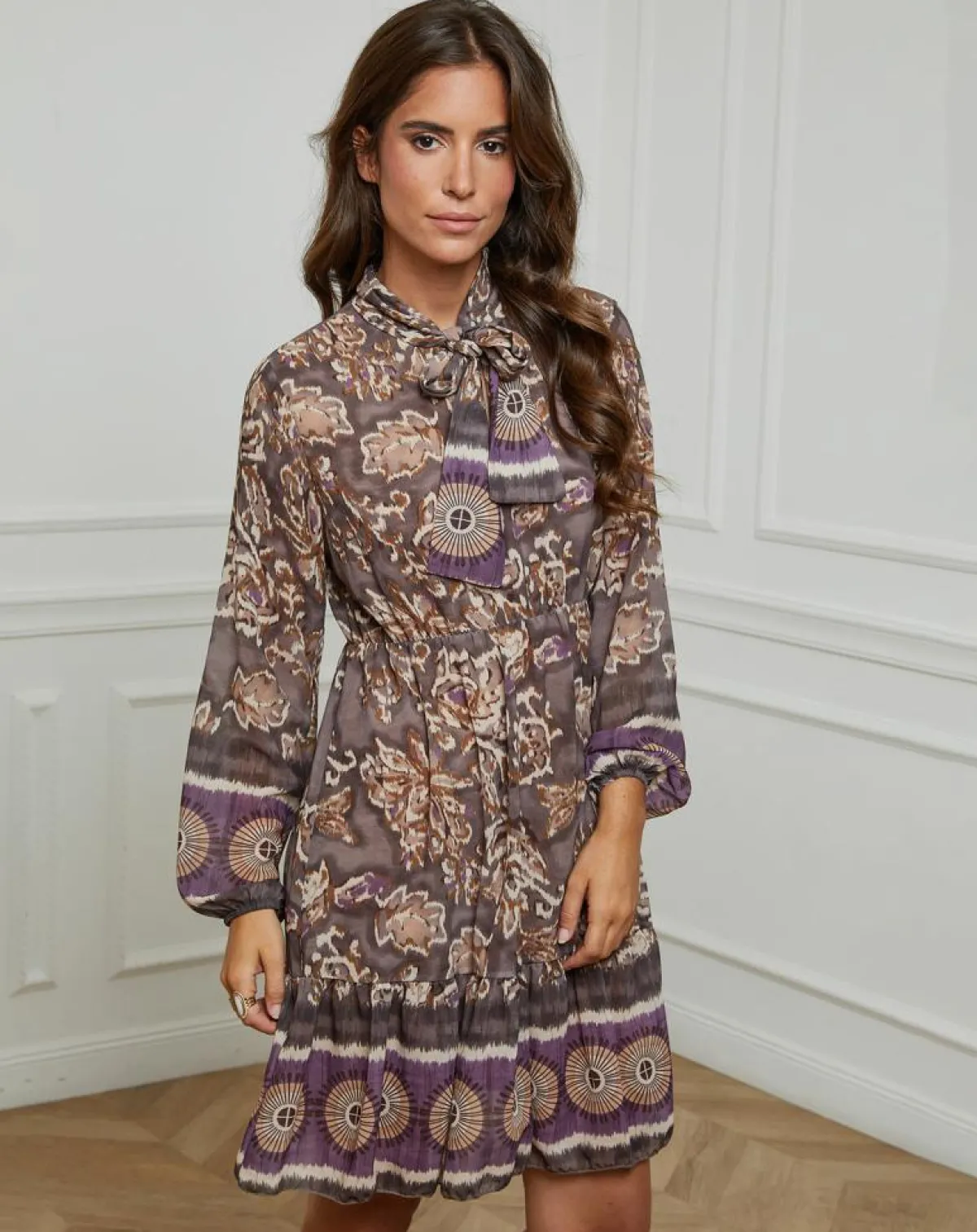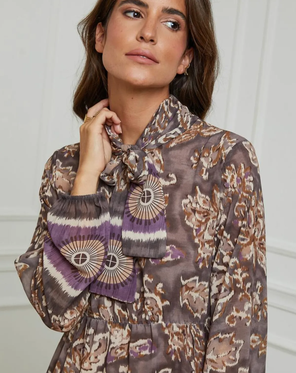 Robe mi-longue Imprimée avec un noeud au niveau du col