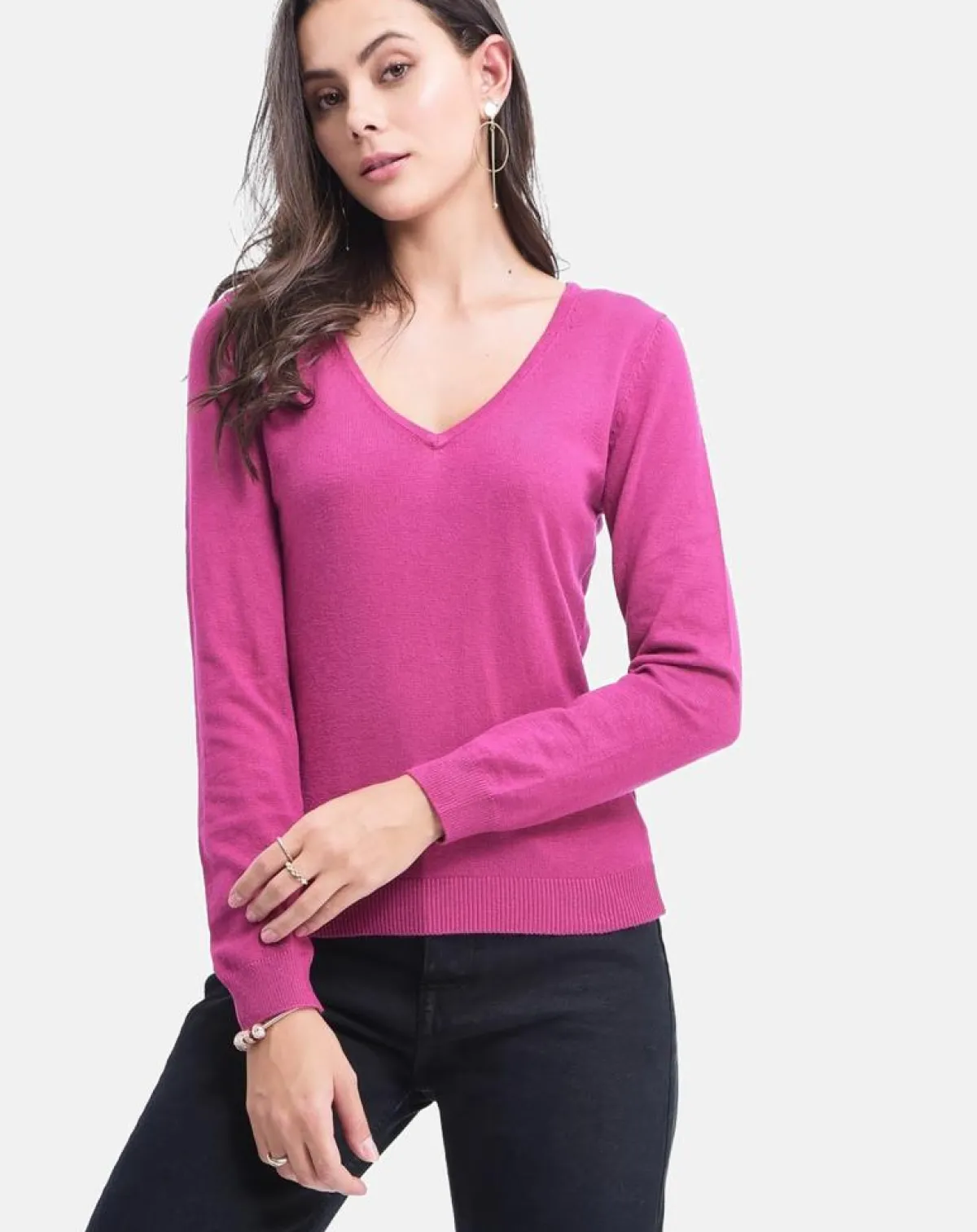 Pull col V classique tricotage en 2 fils à manches longues