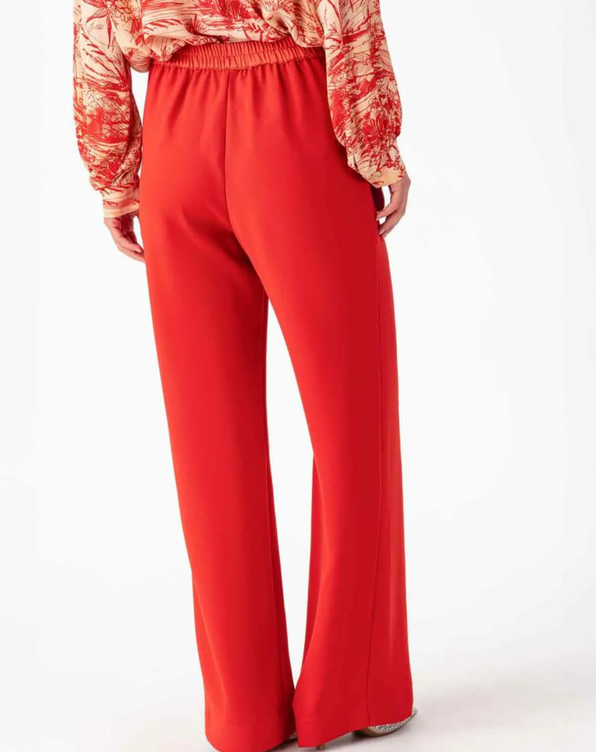 Séduisant avec son style raffiné et sa couleur éblouissante et nuancée, le pantalon JODIE rouge orangé adopte des finitions résolument glamour.