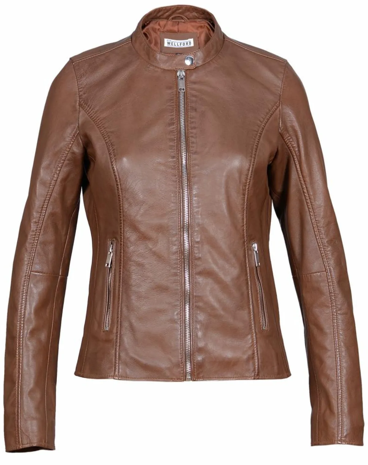 Blue Wellford Vestes, Blousons|Veste en Cuir Alazeia gris foncé