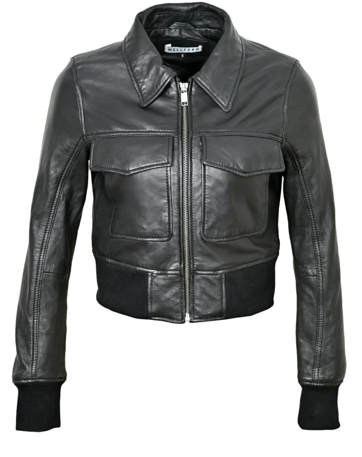 Blue Wellford Vestes, Blousons|Veste en Cuir Alazeia gris foncé