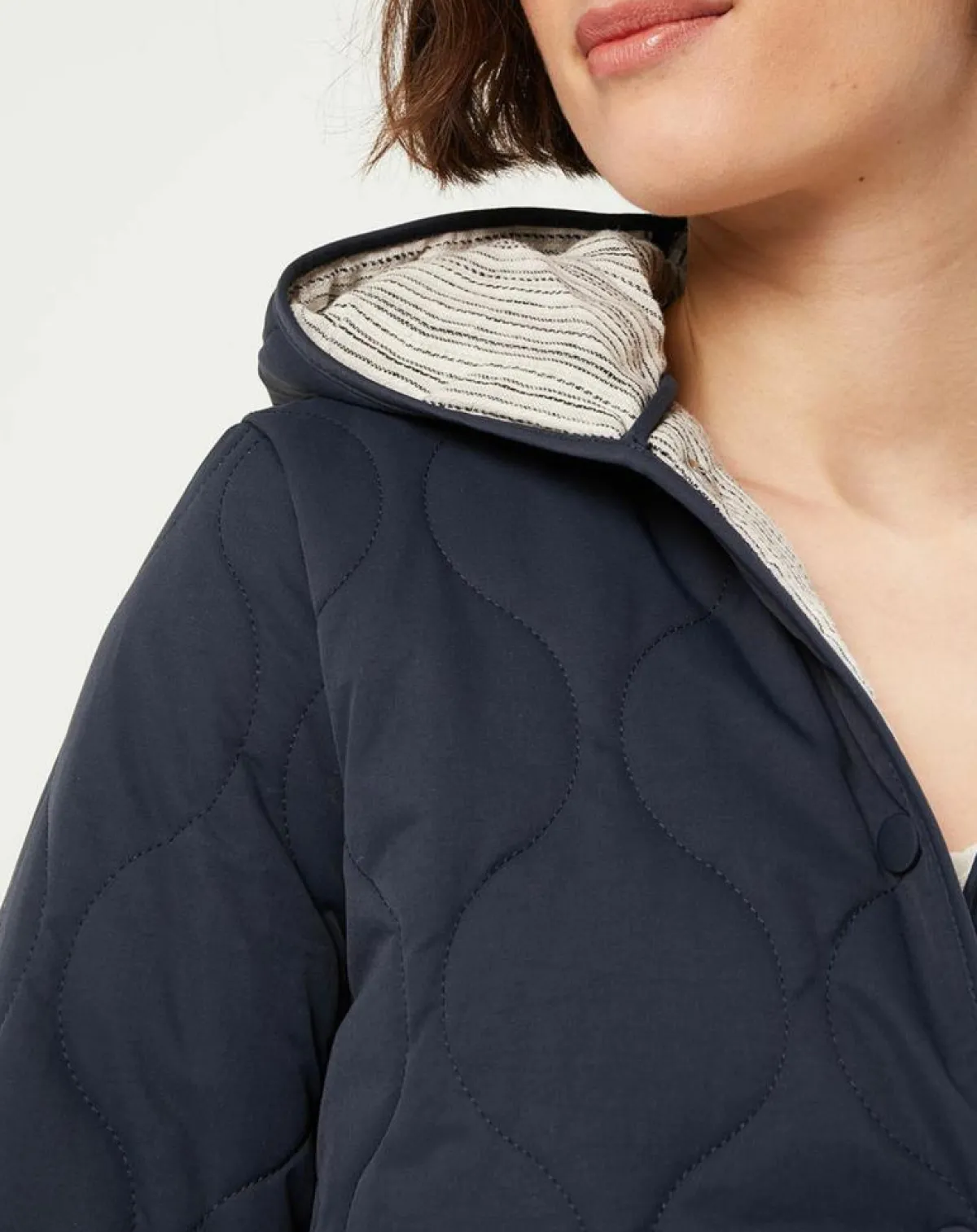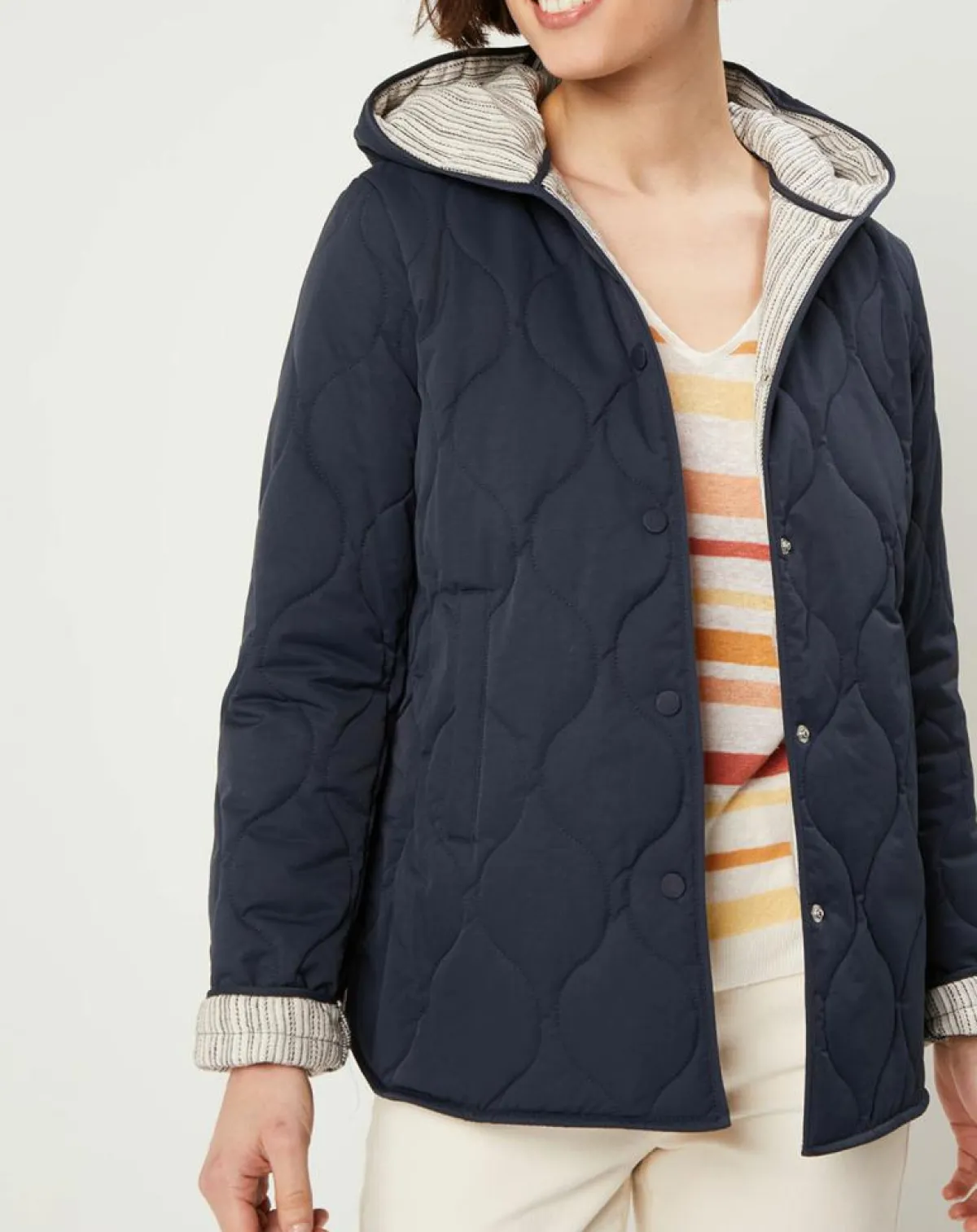 Elle respecte l’environnement, et sublime votre garde-robe avec son coloris passe partout et ses détails de doublure à rayure et de matelassage en petites vagues, ses détails féminins feront toute la différence