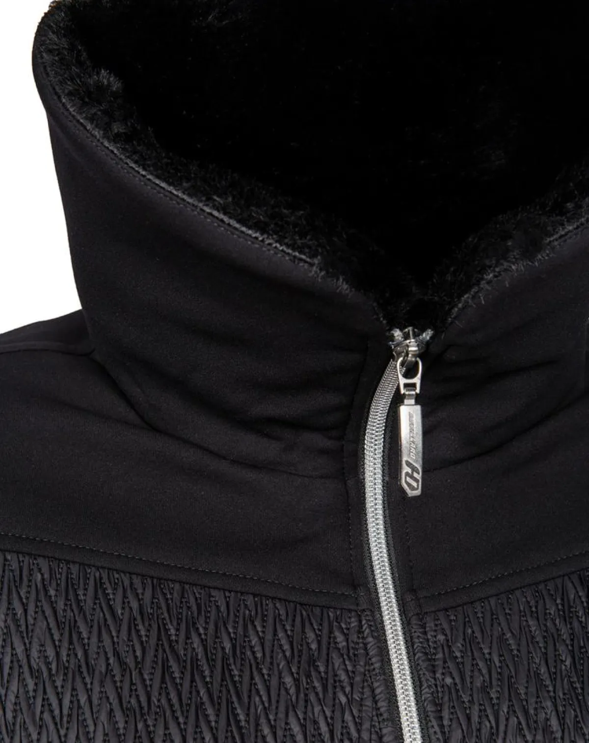 Chaude et douillette, la veste la veste MANON en fausse fourrure, grâce à sa coupe ajustée allie chaleur et glamour