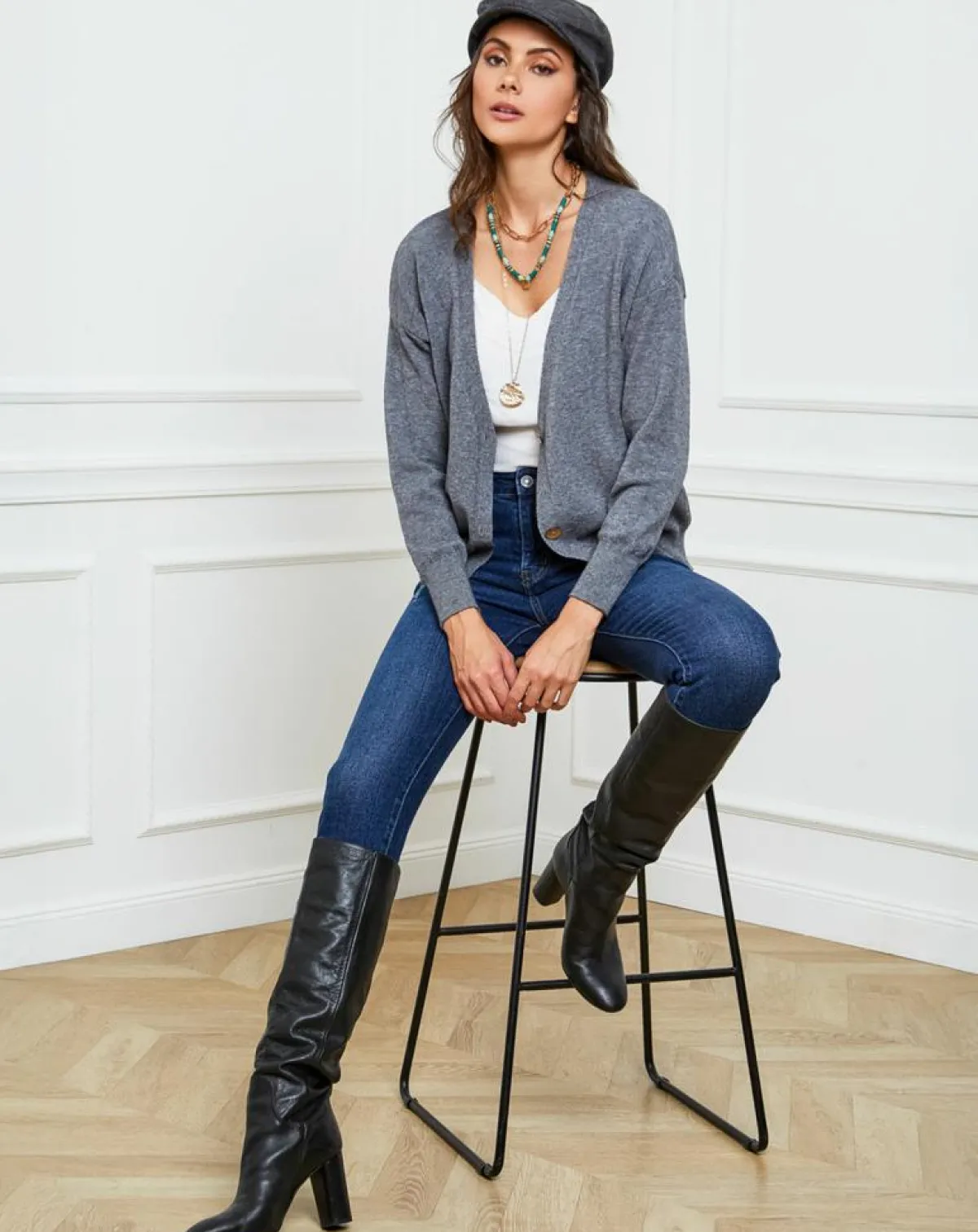 Blue Wellford Vestes, Blousons|Veste en Cuir Alazeia gris foncé