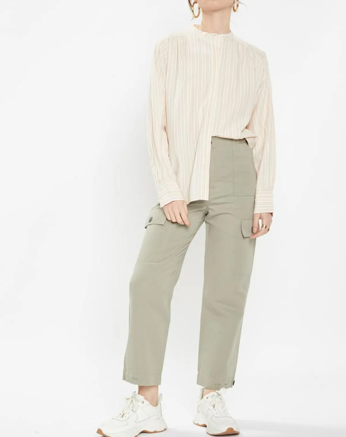 Ce pantalon cargo court Galeries Lafayette composé de coton est muni de poches et d’une fermeture zippée rehaussée d’un bouton