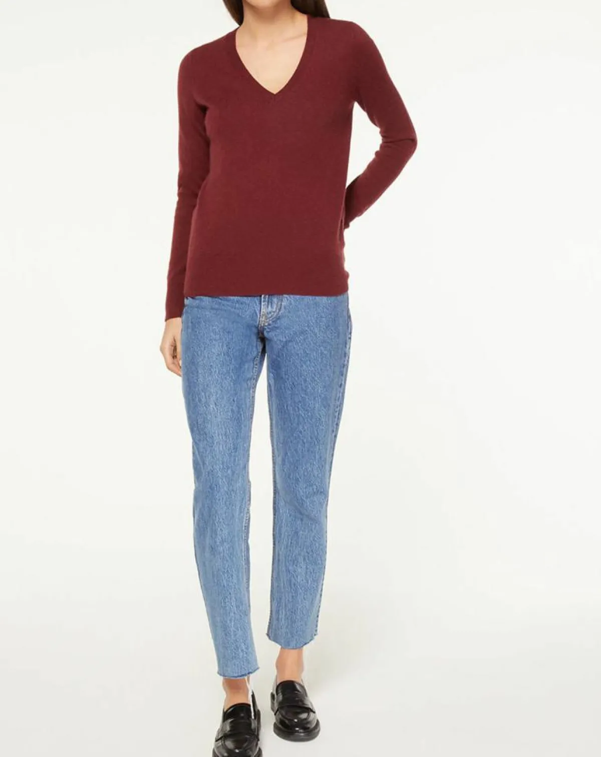 Ce pull droit Galeries Lafayette en cachemire est muni d’un col V et de finitions côtelées.