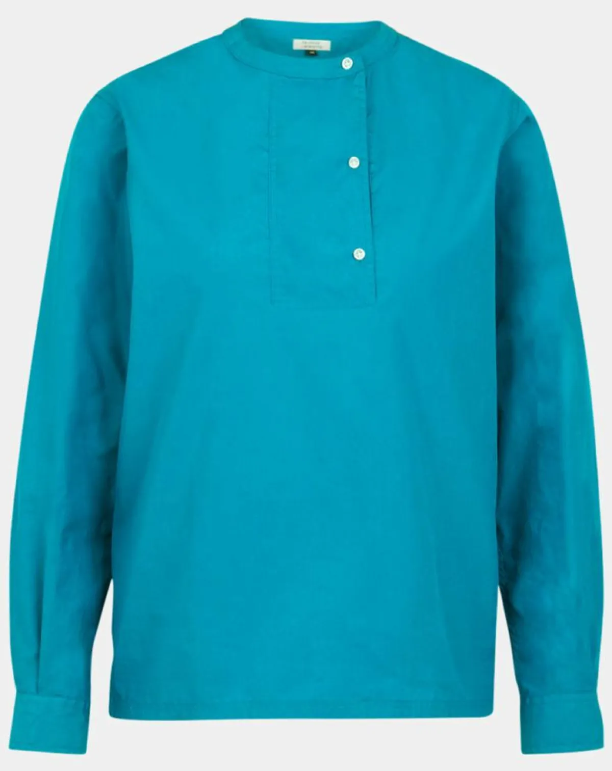 Cette blouse droite Galeries Lafayette en coton, est dotée d’un col rond, de manches longues, de poignets carrés à 3 boutons et d’une fermeture boutonnée à l’avant.