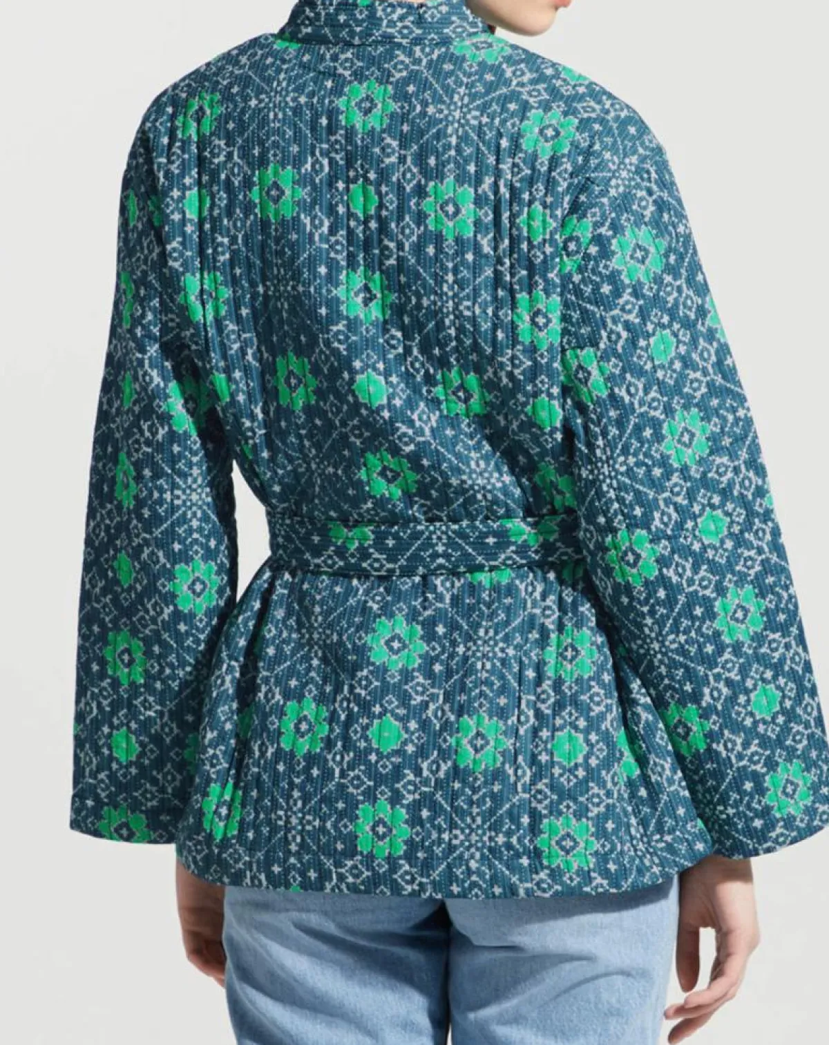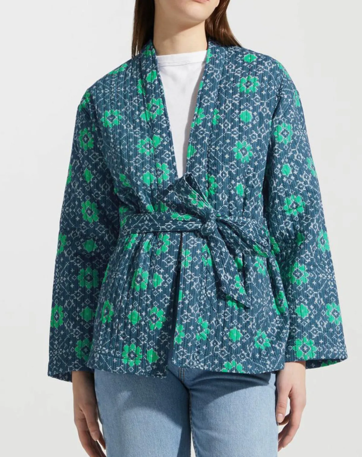 Cette veste kimono Garance Paris en coton séduit par son style boutis et son imprimé fantaisie.
