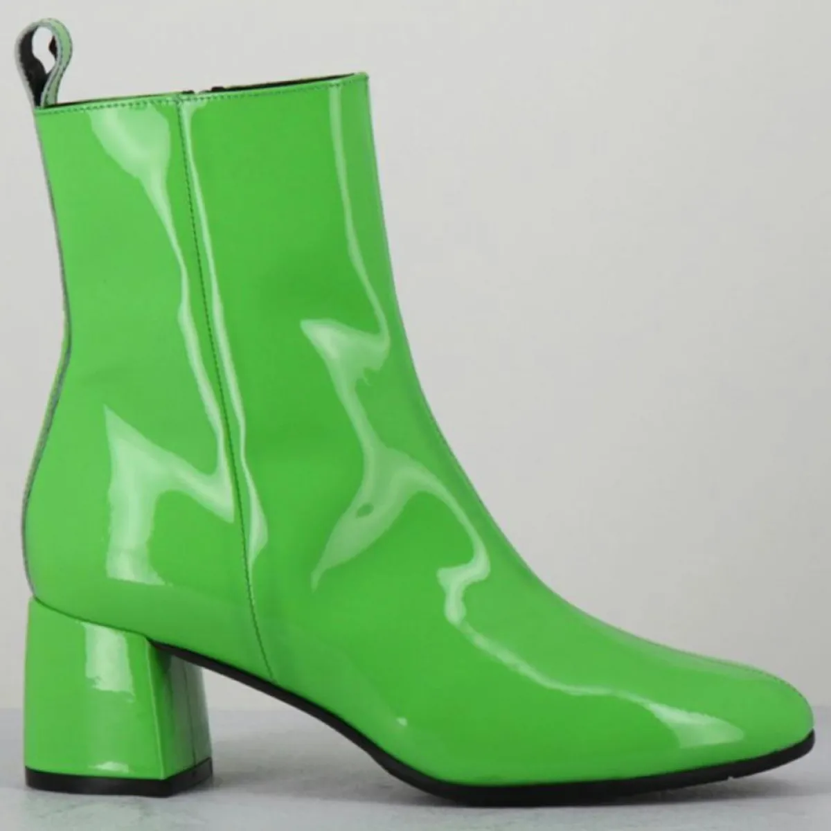 Boots esprit 60s en cuir vernis vert pomme