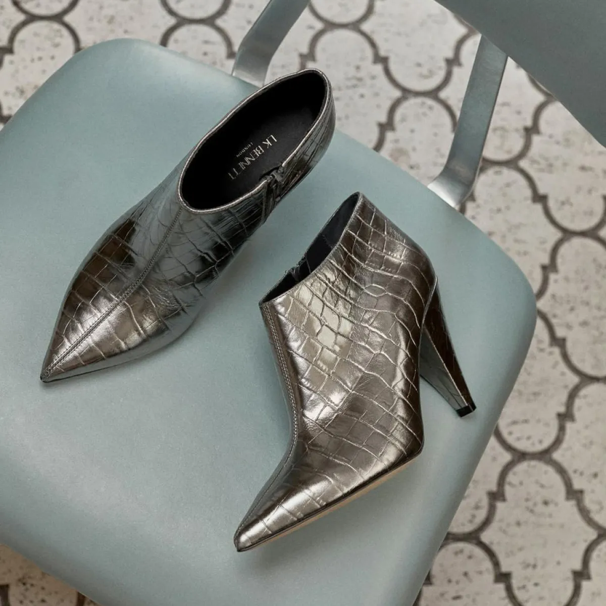 L.K. Bennett Bottines|Bottines en Cuir croco Talulla argentées – Talon 9 cm