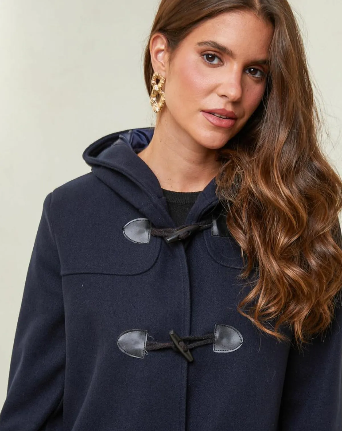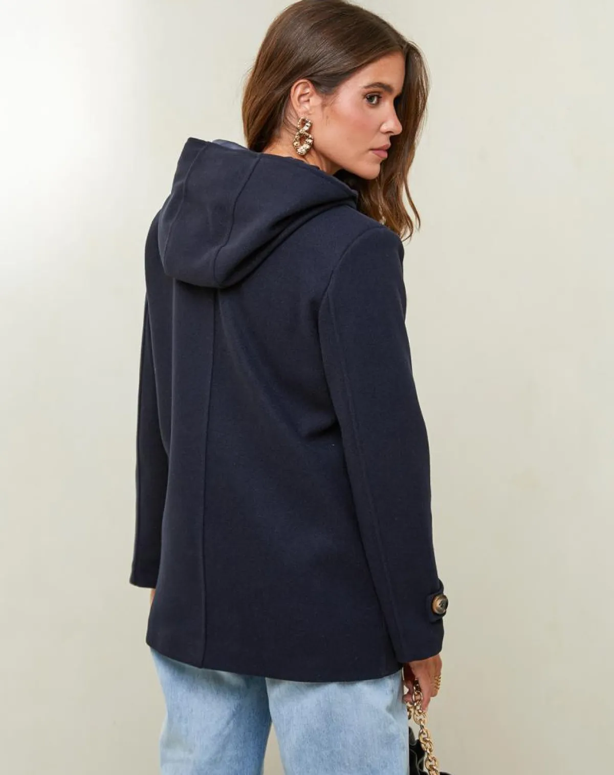 Manteau court à capuche, fermeture à tache avec deux poches sur les côtés