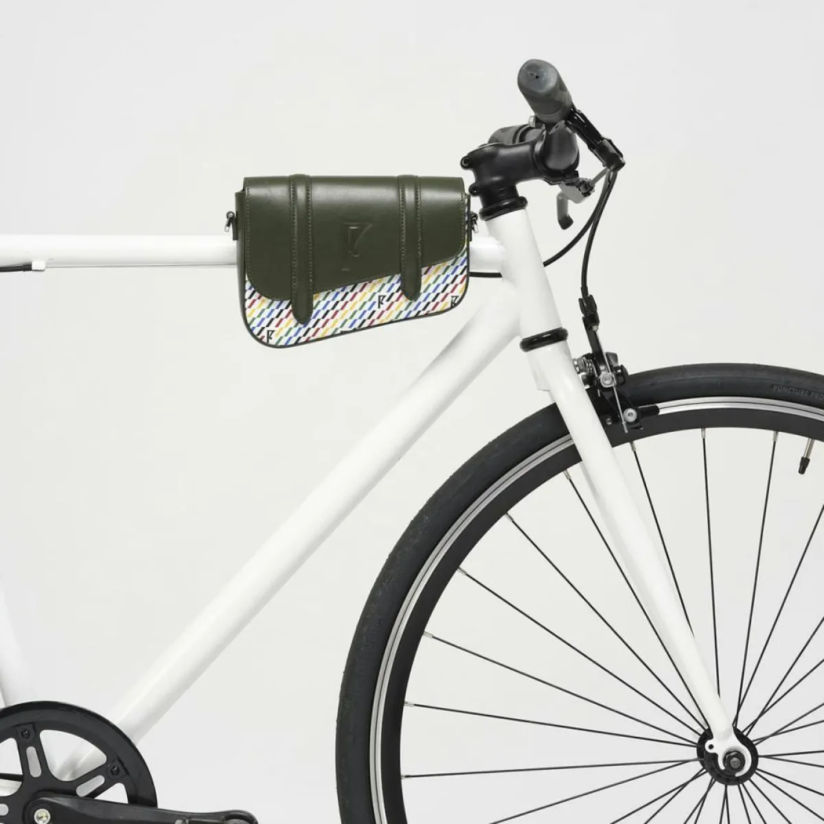 Ce sac unisexe au design asymétrique s’inspire de l’angle caractéristique du cadre des vélos fabriqués en 1907 par les Cycles FARET dans la ville de Bordeaux en France