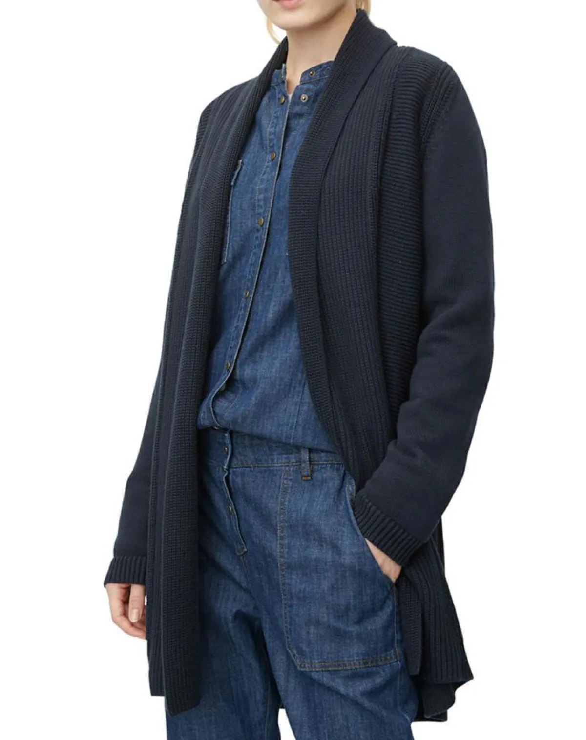 Cardigan moderne en coton bio de premier choix Manteau décontracté en maille de coton, ouvert devant et avec un col châle.