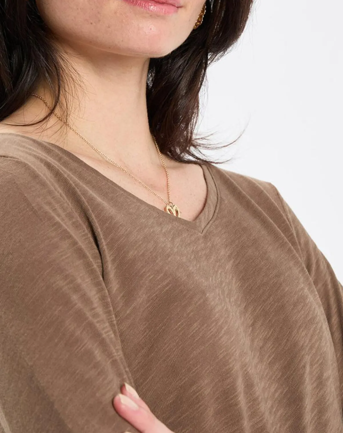 Large encolure en V, manches longues étroites et base droite.
