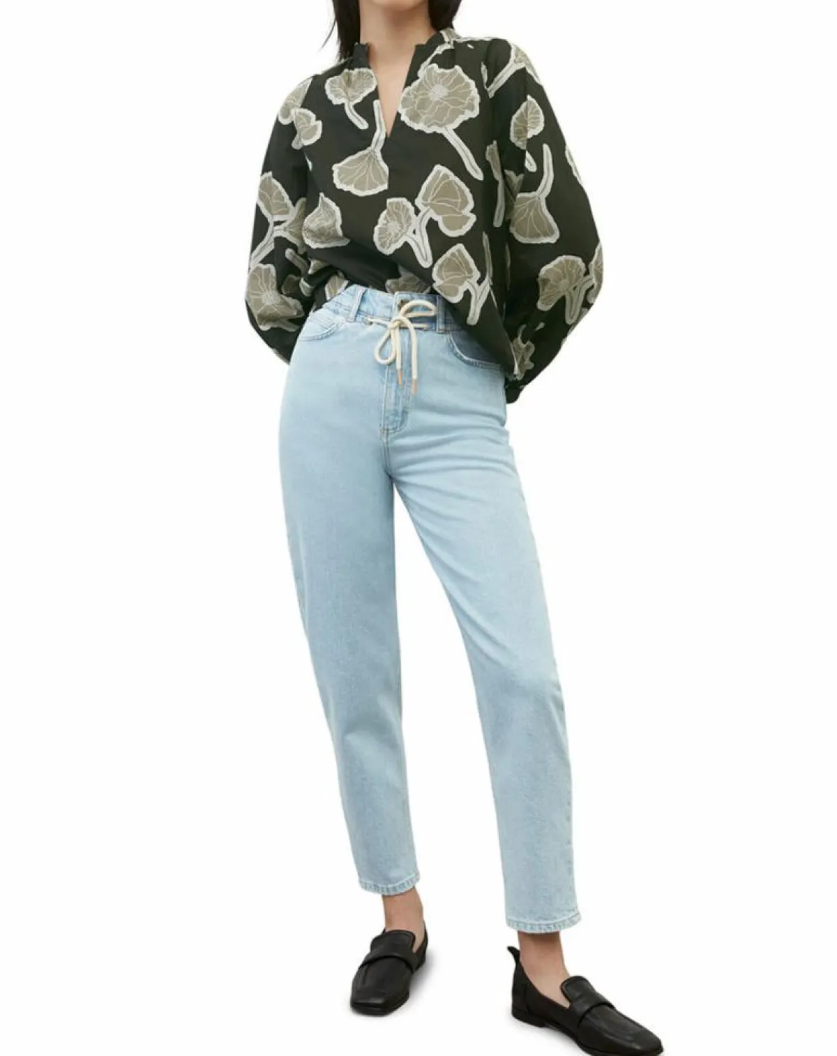 Avec manches originales et volumineuses : la tunique féminine et décontractée en popeline de coton biologique haut de gamme.