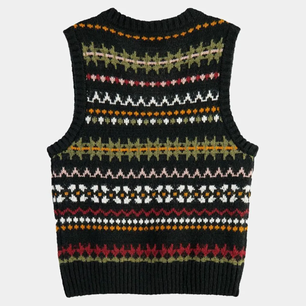 PullCe pull droit sans manches Scotch & Soda en maille jacquard fantaisie est muni d’un col V et de finitions côtelées