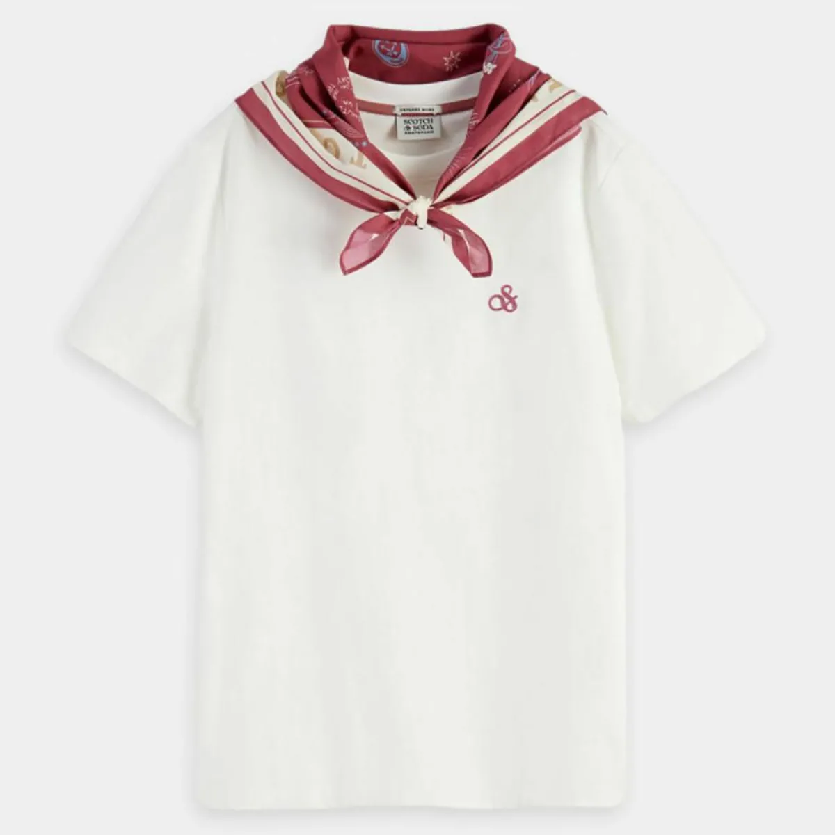 Ce t-shirt Scotch and Soda est conçu en coton bio et séduit par son bandana amovible ornant son col