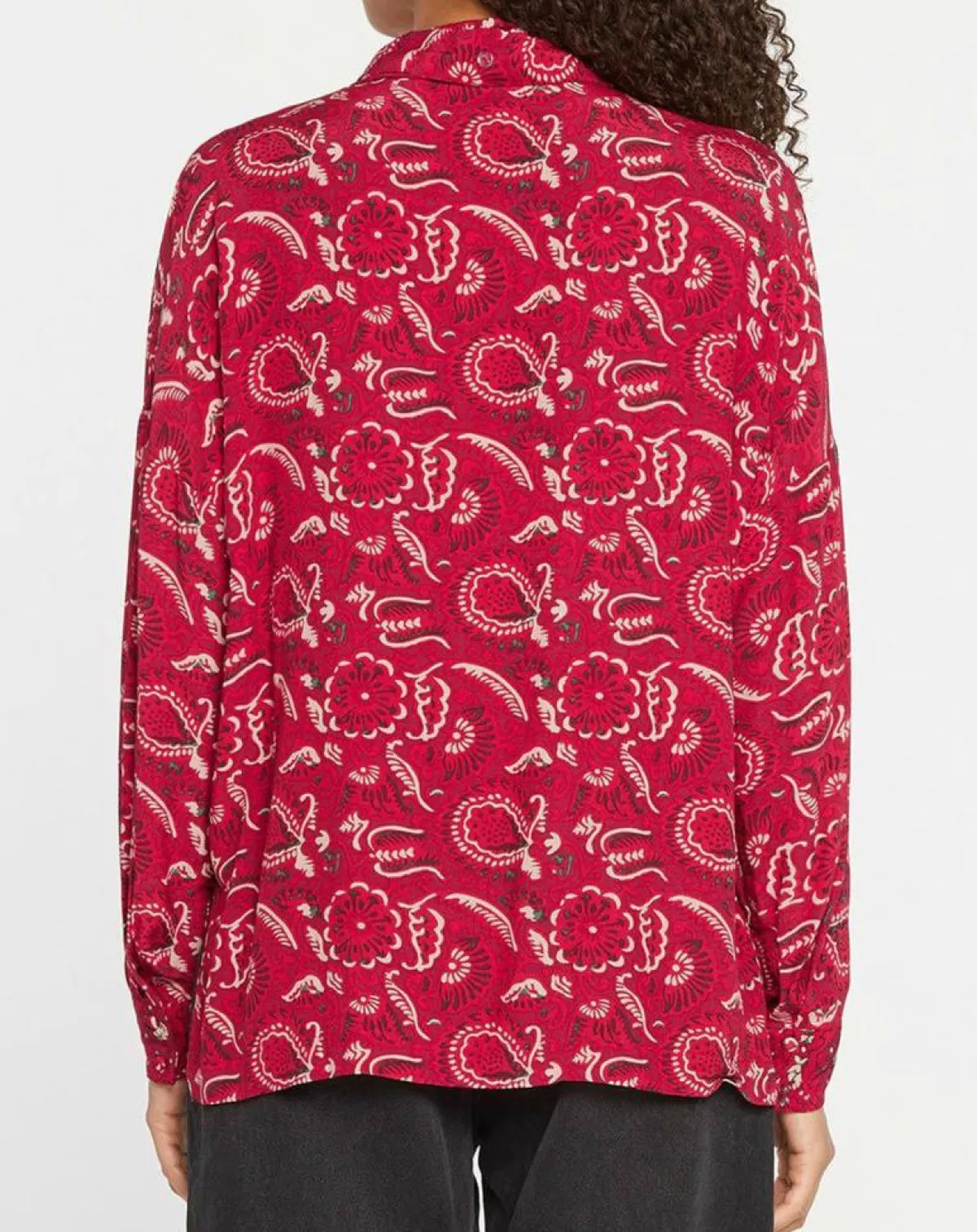 Cette chemise droite fluide Suncoo présente un imprimé fantaisie, un col lavallière, une fermeture boutonnée sous patte et un ourlet fendu.