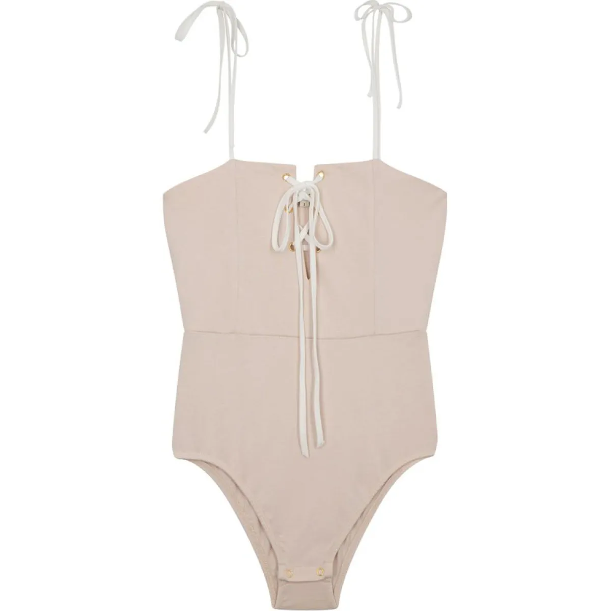 La forme bustier de ce body cintré à la taille, et les ravissants lacets qui encadrent la poitrine et les épaules, font de ce top une pièce qui traversera les saisons