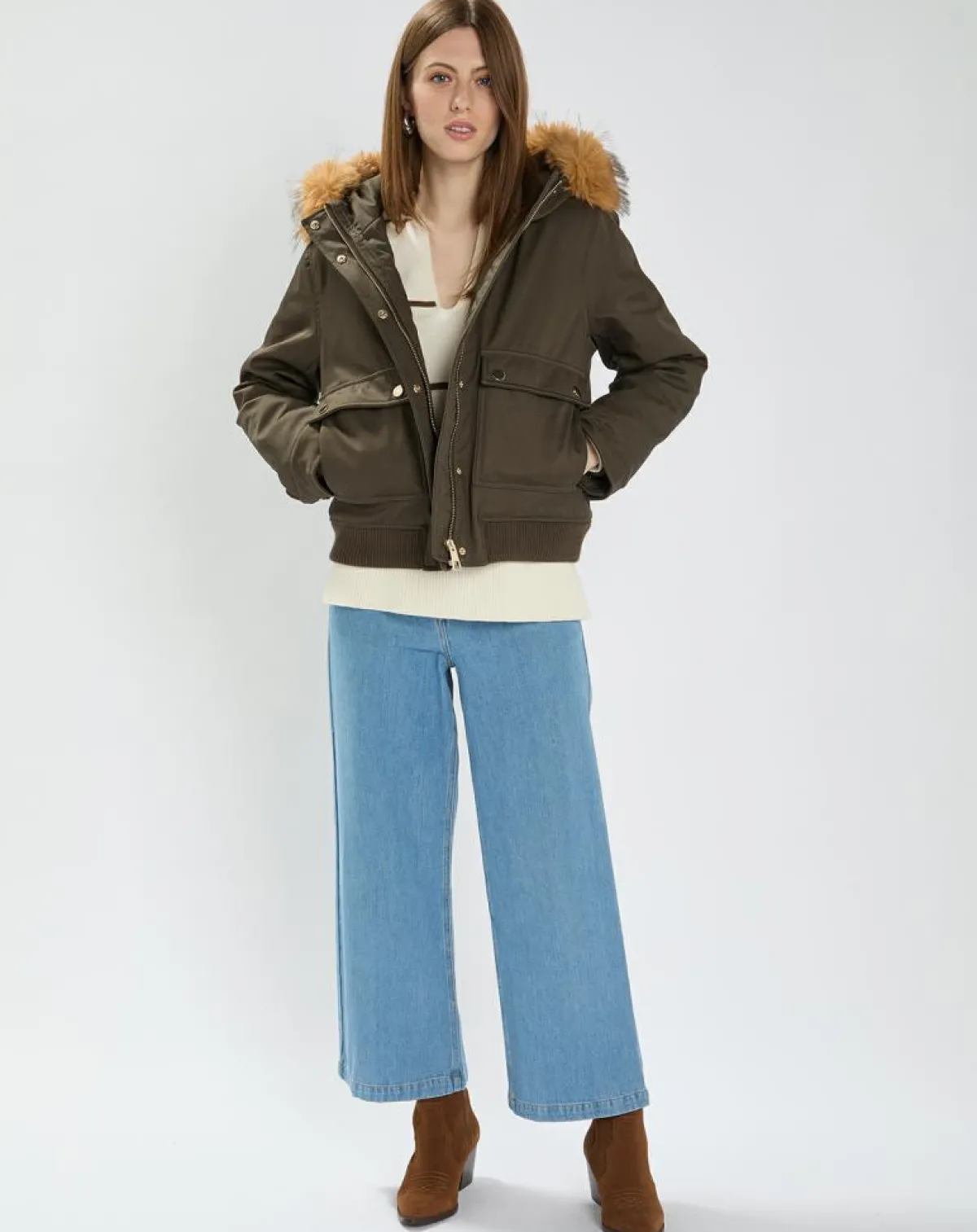 Ornée d’une capuche avec fausse fourrure, son col montant et sa fermeture zippée à pressions assurent chaleur et confort